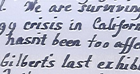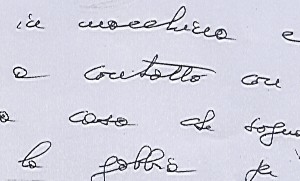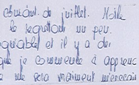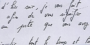 etc... chaque écriture comporte bien des voies d'accès pour l'analyser; sans que la synthèse soit d'ailleurs définitive puisque les évolutions de désirs comme leur réalisation apporteront à chaque fois leur marque... Les spécimens sélectionnés comporteront donc davantage une ou des dominantes en rapport avec le point traité, sans exclure d'autres déductions possibles bien évidemment. Et précisons une fois pour toutes: qu'une espèce graphique et un syndrome de signes sont à situer dans le milieu graphique global, et ne doivent jamais être interprétés seuls.